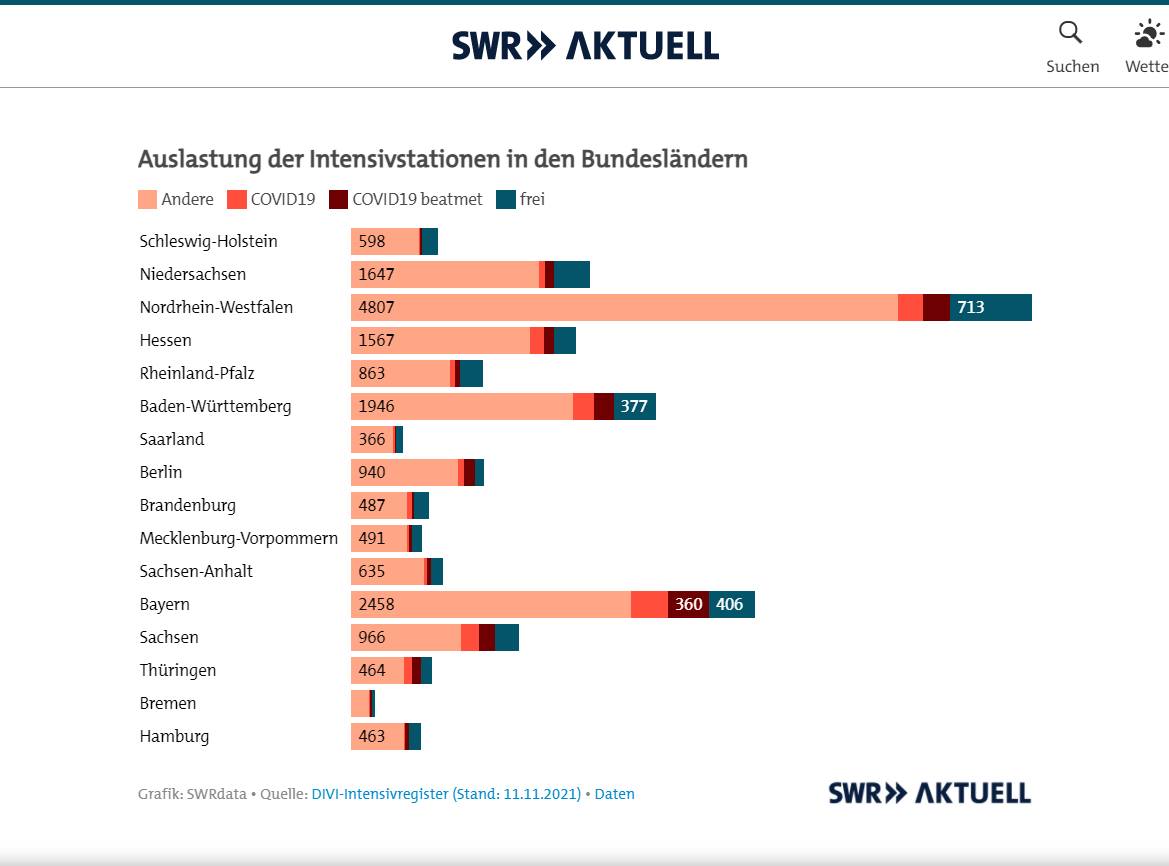Prof. Jörg Martin ist Geschäftsführer der Regionalen Kliniken Holding, mit Krankenhäusern in Landkreisen Ludwigsburg, Enz, Karlsruhe. Sein Intensiv-Chef Götz Geldner behauptet wie Spahn, über 90 % der Corona-Intensivpatienten seien ungeimpft. Aber dann die Einschränkung: Genaue Zahlen könne er nicht nennen, da die Patienten ihren Impfstatus nicht offenbaren müssten. Es gäbe auch Leute, die wüssten, dass sie eine Spritze bekommen hätten, wüssten aber nicht wogegen. Er wisse aber anhand von Antikörperproben, dass die allermeisten Intensivpatienten mit Corona ungeimpft seien.
